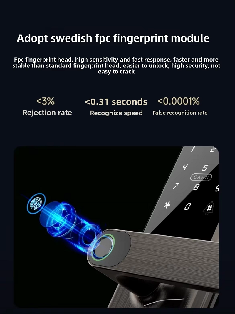 - Tính năng: vân tay, thẻ từ, mã số và chìa cơ.
